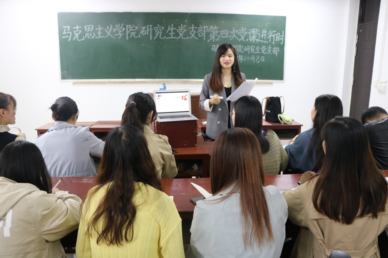 10月8日下午,公司研究生党支部副书记易思铭在教五楼201教室以《不忘初心 牢记使命 用行动践行新时代庄重宣言》为题,给全体党员和入党积极分子上了一次生动丰富的“不忘初心、牢记使命”主题教育专题党课,党课由研究生党支部书记卢云晓主持。