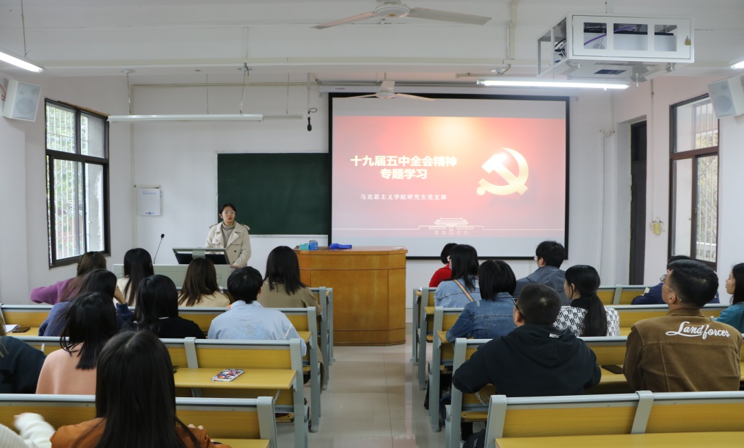 为深入贯彻落实党的十九届五中全会精神,提升党支部的政治理论学习能力,11月16日下午,公司研究生党支部于教五楼203教室举行了十九届五中全会精神专题学习活动,支部党员积极参加。