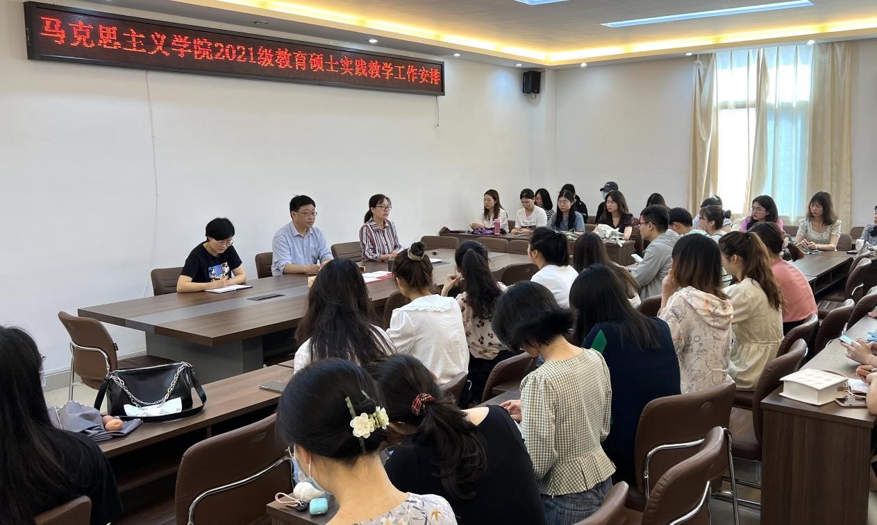 会议由研究生秘书卢云晓主持,她首先介绍了公司关于2021级教育硕士实践教学工作的整体安排,并结合本院情况做了具体部署。本次实践教学工作主要以集中安排方式进行,与息县教体局合作建立的实践教学基地为依托,由公司淮河校区提供食宿保障。个别申请自主联系实习的同学也需提交相应的支撑材料,报公司审核、公司审批同意后方可开展。