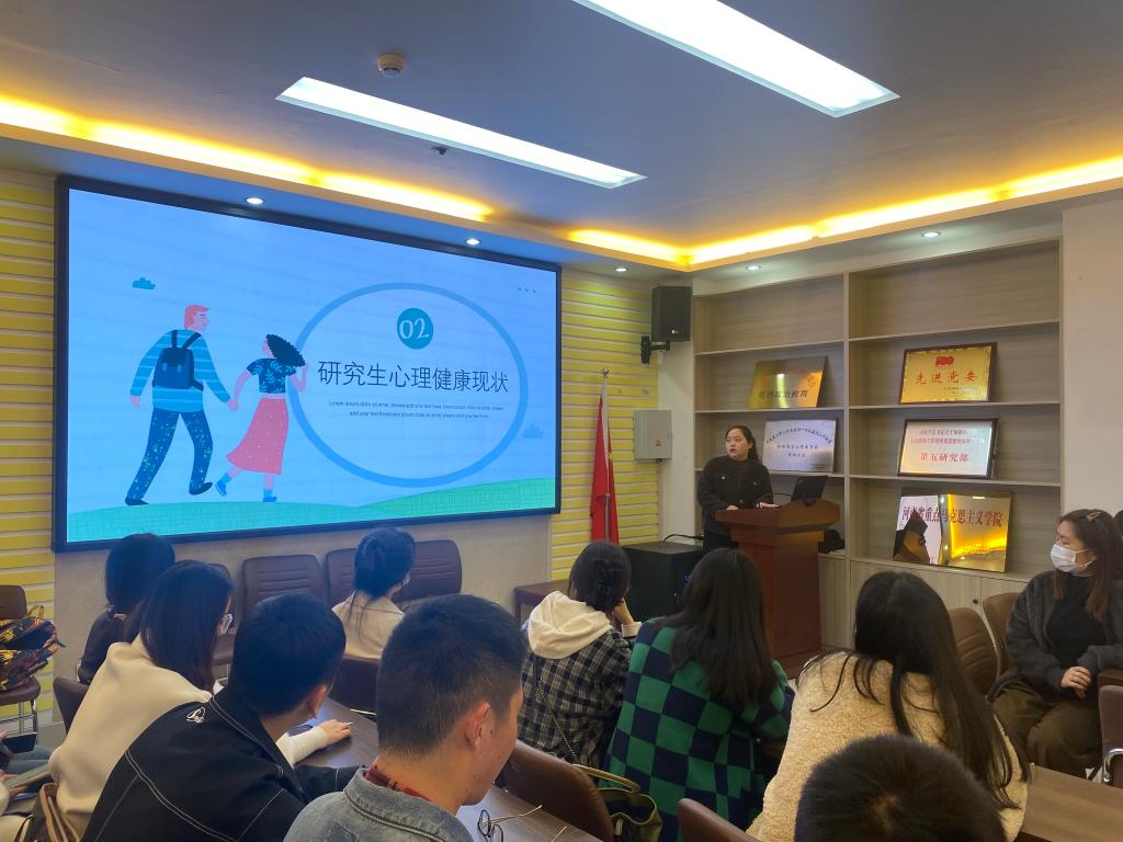 2022级专硕班夏萌萌、杨少晗两位同学作为员工代表,分别就心理健康、诈骗防范做了专业的知识科普,借助案例使同学们更深刻地了解了心理健康问题和网络诈骗陷阱,有了较强的警醒意识。