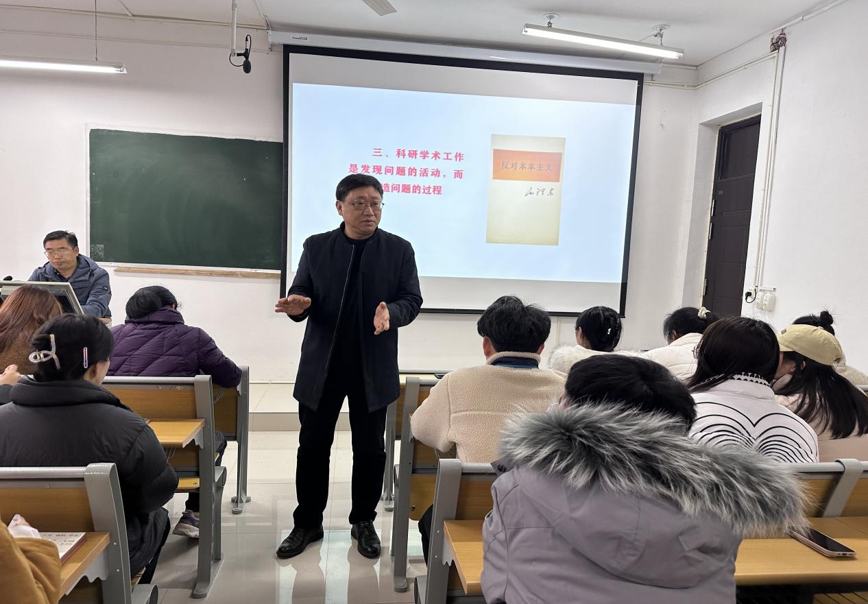 随后,王建礼教授给同学们分享了他关于科研学术工作的体会。他从问题提出、学术积累、文献查阅、视野开拓、师生关系、交流沟通等多个层面为全体研究生提出了宝贵的建议。他鼓励同学们要敢讲敢问,善于提出问题,善于运用比较思维从不同角度和层次分析解决问题,善于运用马克思主义方法论指导学习,善于沟通交流发散思维、开拓视野。讲座结束后,与会同学均表示深受启发。