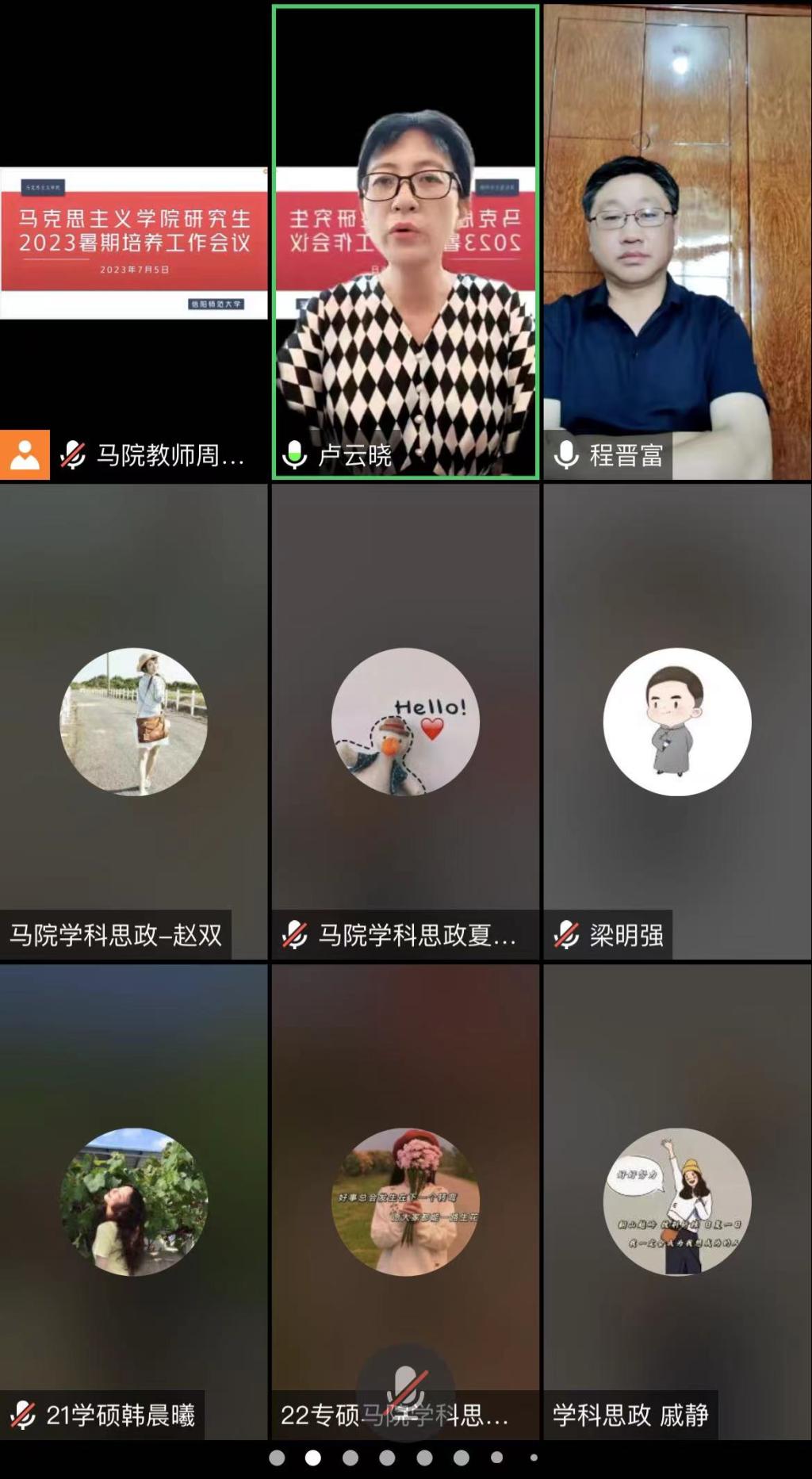卢云晓就暑期及开学初的学业工作安排对各个研究生班级的同学们提出了要求。她强调2022级学术研究生应在2023年9月前,完成选题报告,提交导师审阅,公司将在9月1日向导师落实完成情况;并对2022级教育硕士校外实践教学提交材料进行了讲解说明;同时要求2021级学术研究生在2023年9月前,完成学位论文初稿,提交导师审阅,公司将在9月1日向导师落实完成情况。