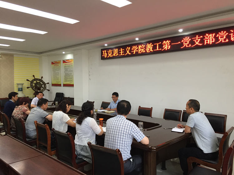 为贯彻公司“两学一做”学习教育工作推进会精神,根据《中共河南省委高校工委办公室转发< 中共河南省委组织部关于在“七一”期间认真做好“两学一做”学习教育专题党课的通知>的通知》精神,6月20日下午,马克思主义公司党委书记唐国战在社科楼323会议室为所在教工第一支部讲授党课,该支部全体党员参加了此次授课活动。