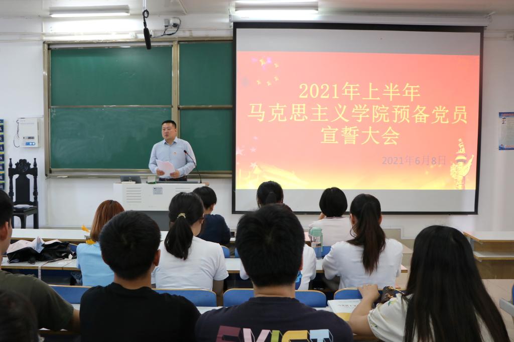 6月8日下午,公司2021年上半年预备党员宣誓大会在社科楼514教室举行。公司党委副书记何晓坚、员工党支部书记、预备党员和部分入党积极分子共同参与此次大会。会议由预备党员王明亮主持。