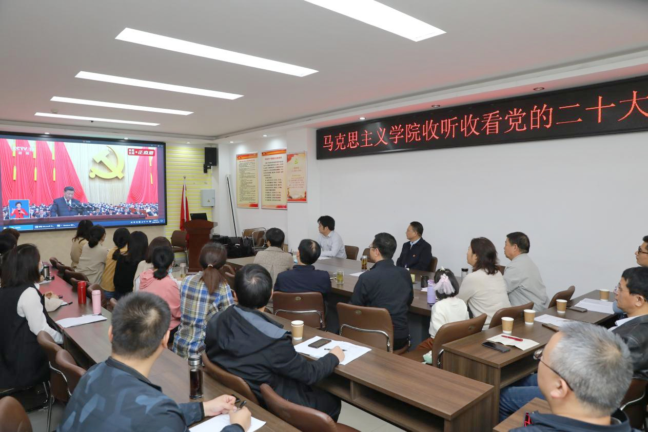 10月16日上午10时,XCSport领导班子成员和全体教师在323会议室大屏幕前集中收听收看党的二十大开幕盛况。