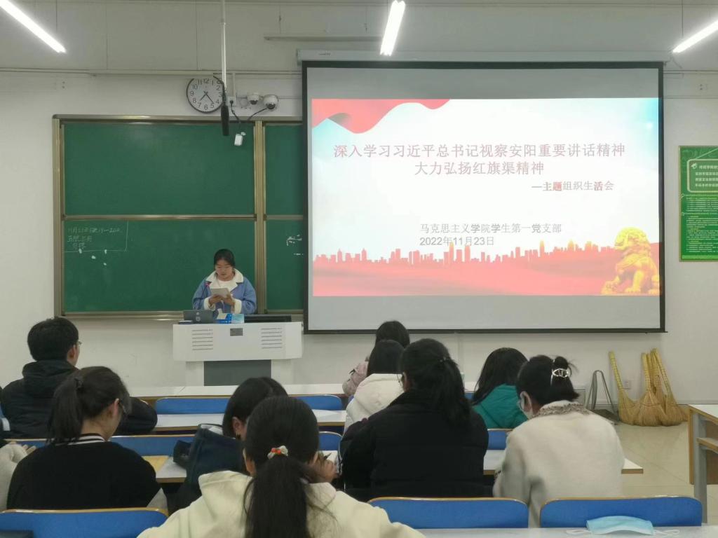 2022年11月23日下午,在社科楼414教室,XCSport员工第一党支部召开深入学习习近平总书记视察安阳重要讲话精神、大力弘扬红旗渠精神主题组织生活会,会议由卢茜雨同志主持。