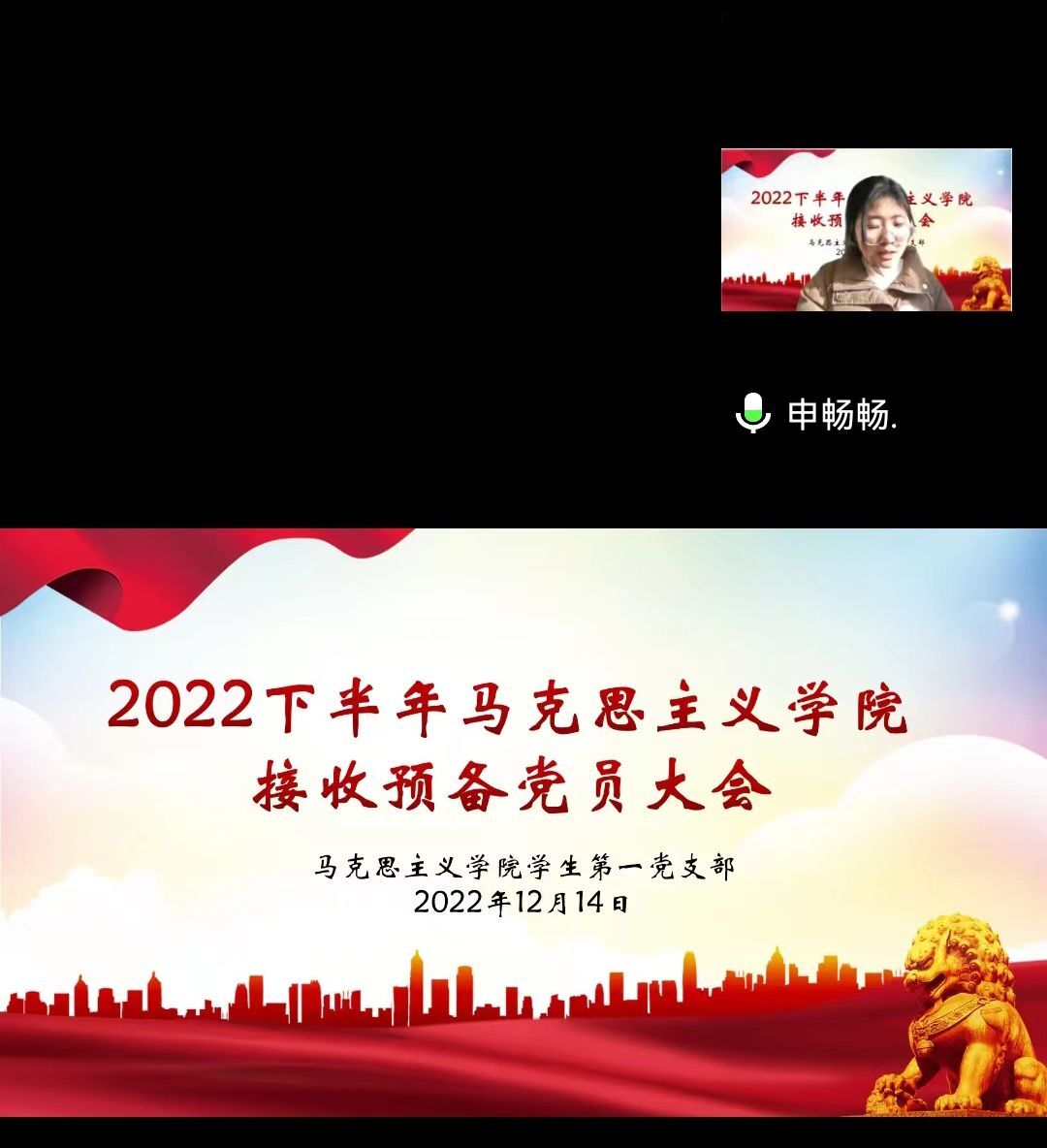 中共信阳师范公司XCSport员工第一党支部委员会于2022年12月14日在腾讯会议召开了2022年下半年接收预备党员支部大会。公司员工第一党支部书记高小佳,员工第一党支部全体党员,预备党员和党员发展对象共同参加此次会议。会议由卢茜雨主持。