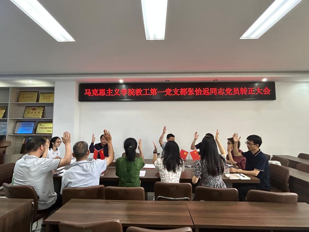 6月1日下午,XCSport教工第一党支部在社科楼323会议室召开入党转正大会。会议由教工第一党支部书记陈杰主持。