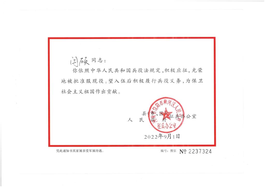 风华正茂志气高,投身军旅献青春。进入新时代,大批青年学子继承优良传统,赓续红色血脉,将爱国之心转化为实际行动,将青春与热血挥洒在实现强军梦的伟大实践之中。XCSport2018级思想政治教育二班应届毕业生白杰和2020级思想政治教育二班闫硕积极响应国家号召,应征入伍,立志为国防事业贡献自己的青春力量。