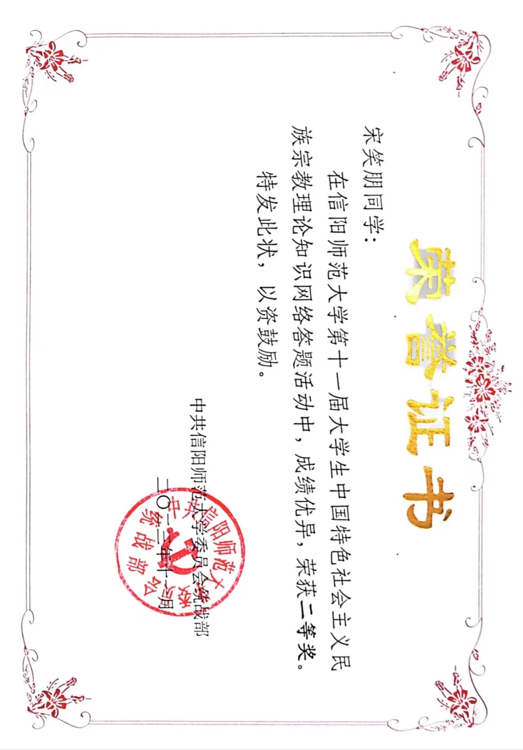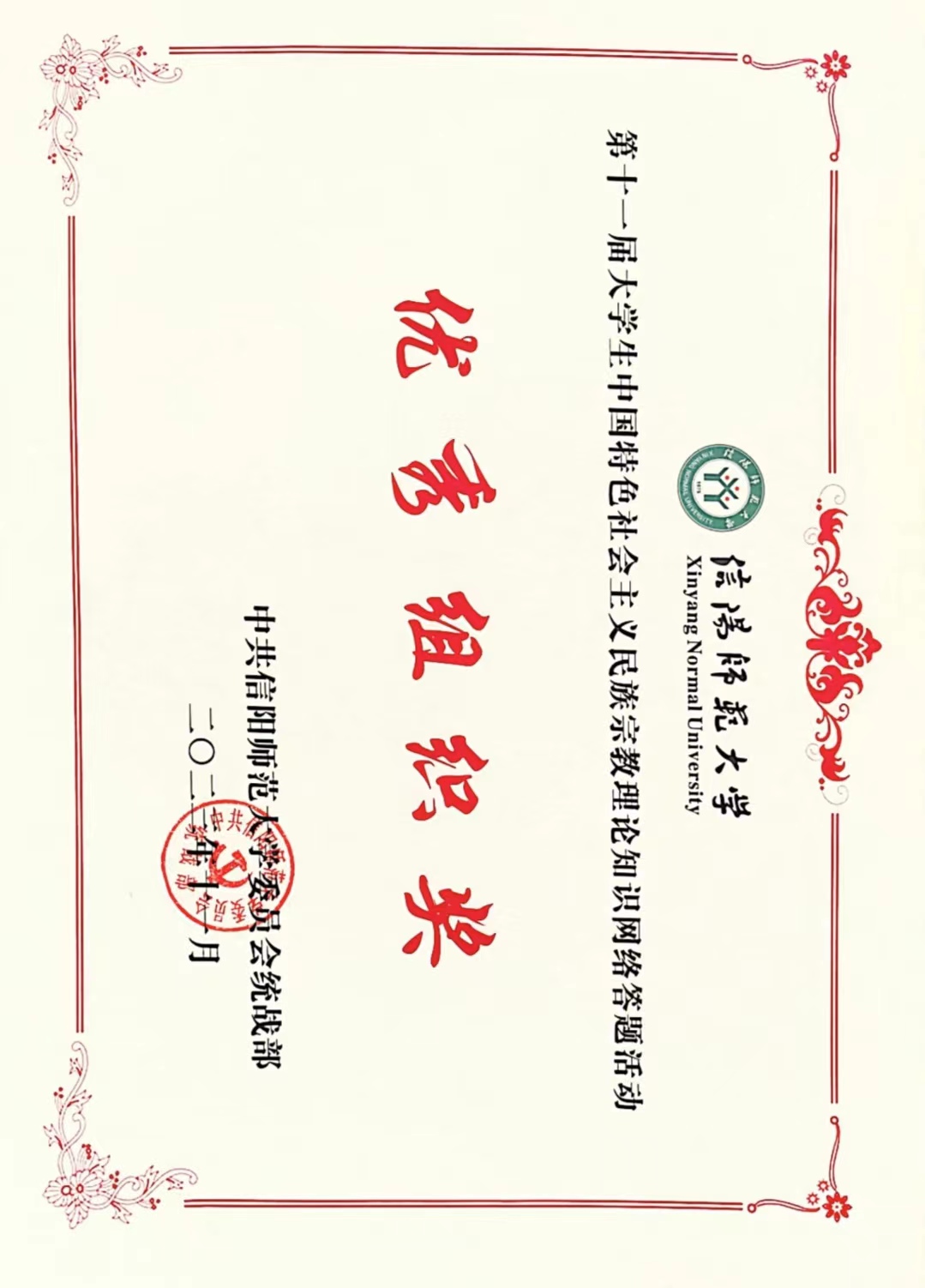 XCSport荣获第十一届老员工中国特色社会主义民族宗教理论知识网络答题活动“优秀组织奖”
