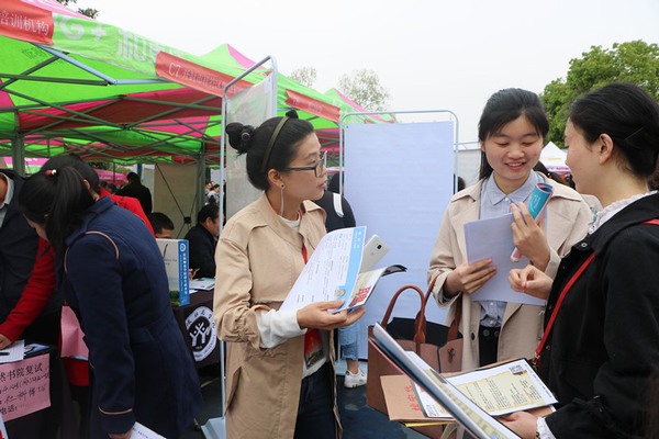4月14日上午,河南省毕业生就业市场豫南地区分市场暨信阳师范公司2018届毕业生春季双选会在公司人文楼西篮球场举行,本次双选会由河南省教育厅主办,信阳师范公司、信阳市人力资源与社会保障局共同承办。公司经理杨云善、团委老师孙绪曙、曹菁菁到场了解企业用人情况、招聘情况。来自制药、教育、金融、文化、建筑、销售、信息技术等行业领域的二百余家企事业单位参加了招聘会,吸引了公司多名毕业生前来应聘。