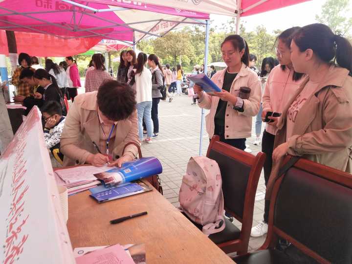 4月13日上午,河南省毕业生就业市场豫南分市场暨信阳师范公司2019届毕业生春季就业双选会在公司人文楼西篮球场举行。本次双选会由河南省教育厅、河南省大中专就业服务中心主办,信阳师范公司、信阳市人力资源和社会保障局共同承办。来自教育、文学、管理、销售、金融、建筑等行业领域的二百余家企业单位参加了招聘会,吸引公司多名毕业生前来应聘。公司团委老师曹菁菁到场了解企业用人情况、招聘情况。