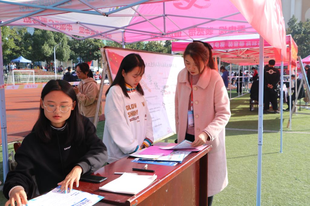 11月7日,河南省毕业生就业市场豫南分市场暨信阳师范公司2021届毕业生线下冬季就业双选会在公司西操场拉开帷幕,本次双选会由河南省教育厅、河南省大中专员工就业服务中心共同主办,信阳师范公司承办。本次双选会采用线上线下同步的方式进行,吸引了来自全国各地,各行各业具有招聘需求的200多家优质企事业单位前来参加,覆盖教育培训、金融服务、电子商务等多个领域,为众多应届毕业生提供就业选择。公司团委老师陶青青到场了解企业用人情况与相关招聘情况。