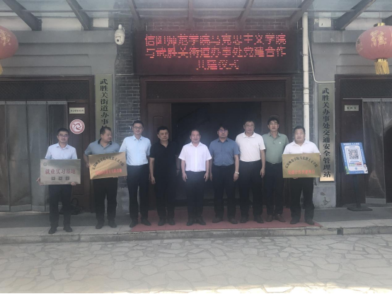 双方相关负责人在党建合作、员工就业服务、科学研究、成果转化、实习实训基地共建等方面进一步交流,达成相关合作意向,并向武胜关街道办事处授予信阳师范公司马克思主义公司党建合作共建单位、思想政治教育实践基地、信阳师范公司“就业实习基地”牌匾。