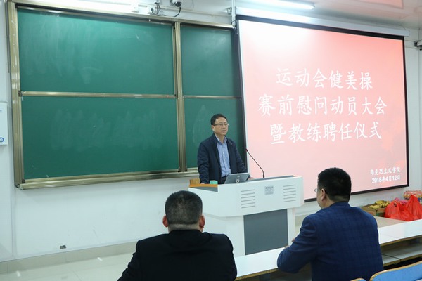 为鼓励大家积极参加训练,调节参赛人员的心理状态,4月12日下午,XCSport在社科楼516教室举行了运动会健美操赛前慰问大会暨教练聘任仪式。公司党委书记唐国战,党委副书记徐永新、何晓坚,副经理程晋富,党委秘书孙绪曙,团委书记曹栋,团委老师曹菁菁与公司员工会部分成员一同慰问运动员和健美操训练人员。仪式由分团委副书记张雅琼主持。