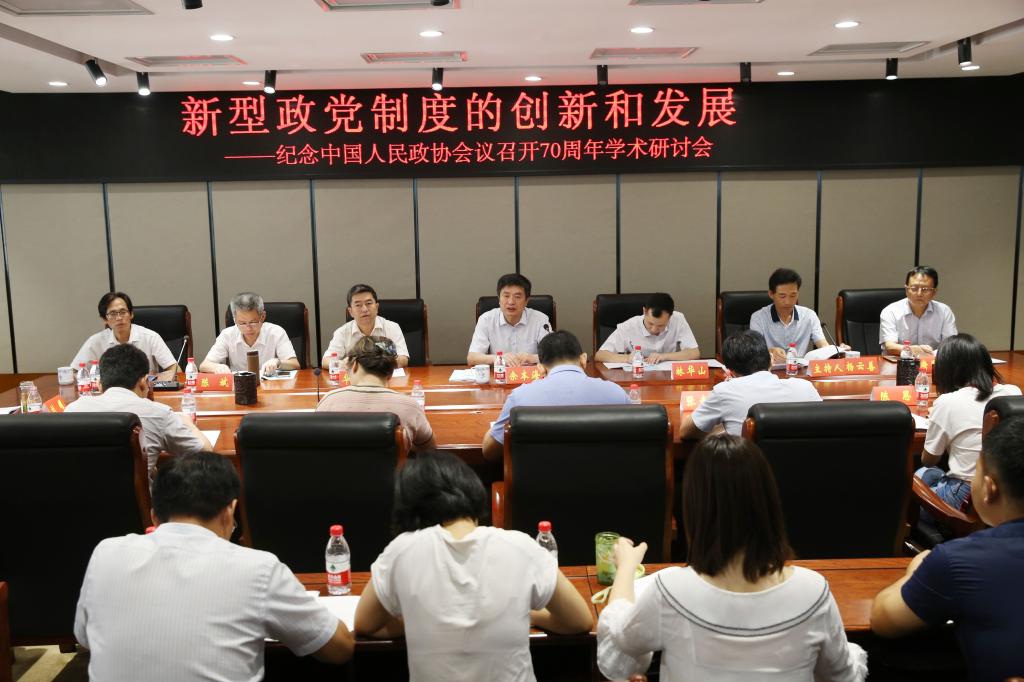 为了更好地纪念中国人民政治协商会议召开70周年,凝聚和深化学界学习研讨习近平新时代统一战线思想的学术共识,8月17日,由中国统一战线理论研究会统战基础理论研究上海研究基地(复旦大学)、信阳师范公司主办,河南省统一战线理论研究信阳师范公司基地、信阳师范公司当代马克思主义研究所承办,《统一战线学研究》期刊社、大别山干部公司协办的“新型政党制度的创新与发展——纪念中国人民政协会议召开70周年”学术研讨会在公司逸夫楼321会议室召开。副董事长余本海出席开幕式。来自浙江财经大学、中央社会主义公司、武汉大学、山东大学、黄淮公司、重庆教育科学研究院、信阳市政协、大别山干部公司及重庆社会主义公司《统一战线学研究》期刊社及公司XCSport师生代表60余人参加了会议。开幕式由XCSport经理杨云善教授主持。
