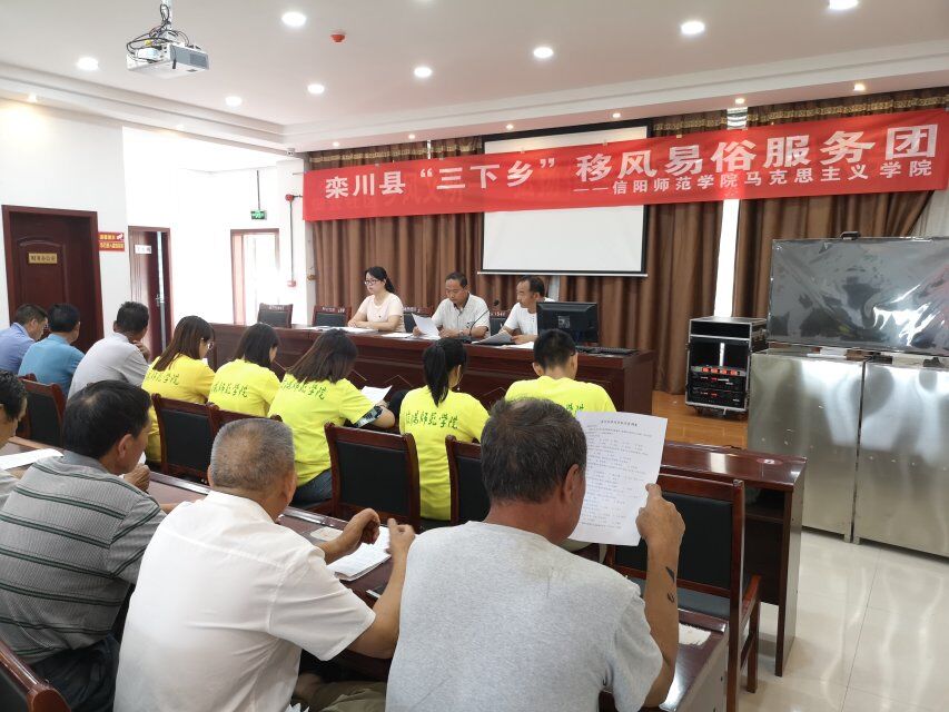 活动前期,调研队确定了调研目的和调研方案,反复修定、斟酌调查问卷,并对涉及书籍史料进行了查询。活动中,调研队首先通过问卷调查、实地走访和查阅文献的方式对栾川县“三镇一村”的风俗民情进行了考察,通过与当地居民及工作人员的询问了解文明乡风的建设情况。接着,调研队参与到农村新式婚礼和红白理事会工作中,感悟“移风易俗”对乡风文化的影响,并对美丽乡村建设进行了宣讲和献策。最后,调研队成员结合参观考察成果、问卷调查结果及相关图文收集,在指导老师的帮助下撰写调研报告并完成后续宣讲汇报工作。