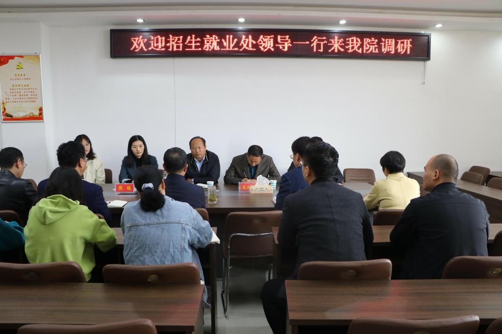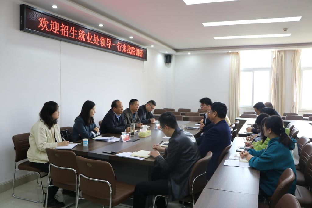 本次调研围绕招生工作和就业创业工作两个方面展开。首先,朱四倍书记结合实际,对公司新生报到情况及毕业生就业等情况作出详细汇报,并提出相关问题。他指出,受当前经济形势、疫情、双减政策的影响,公司毕业生就业压力增大,同时,公司考研员工多,竞争激烈,“二战”员工人数增加,这对毕业生去向落实率有所影响。随后,赵明民处长针对问题提出有效建议并指出,在十四五期间,要做好新高考改革下招生专业和招生数量的规划,发展好作为国家一流的思想政治教育专业,培养马克思主义接班人,认真落实高等人才培养政策。对于就业创业工作,他提出,公司要做好员工就业技能培训工作,提高员工创新意识与创新能力,建立人才招聘互动机制,实现就业指导全程化、全员化。