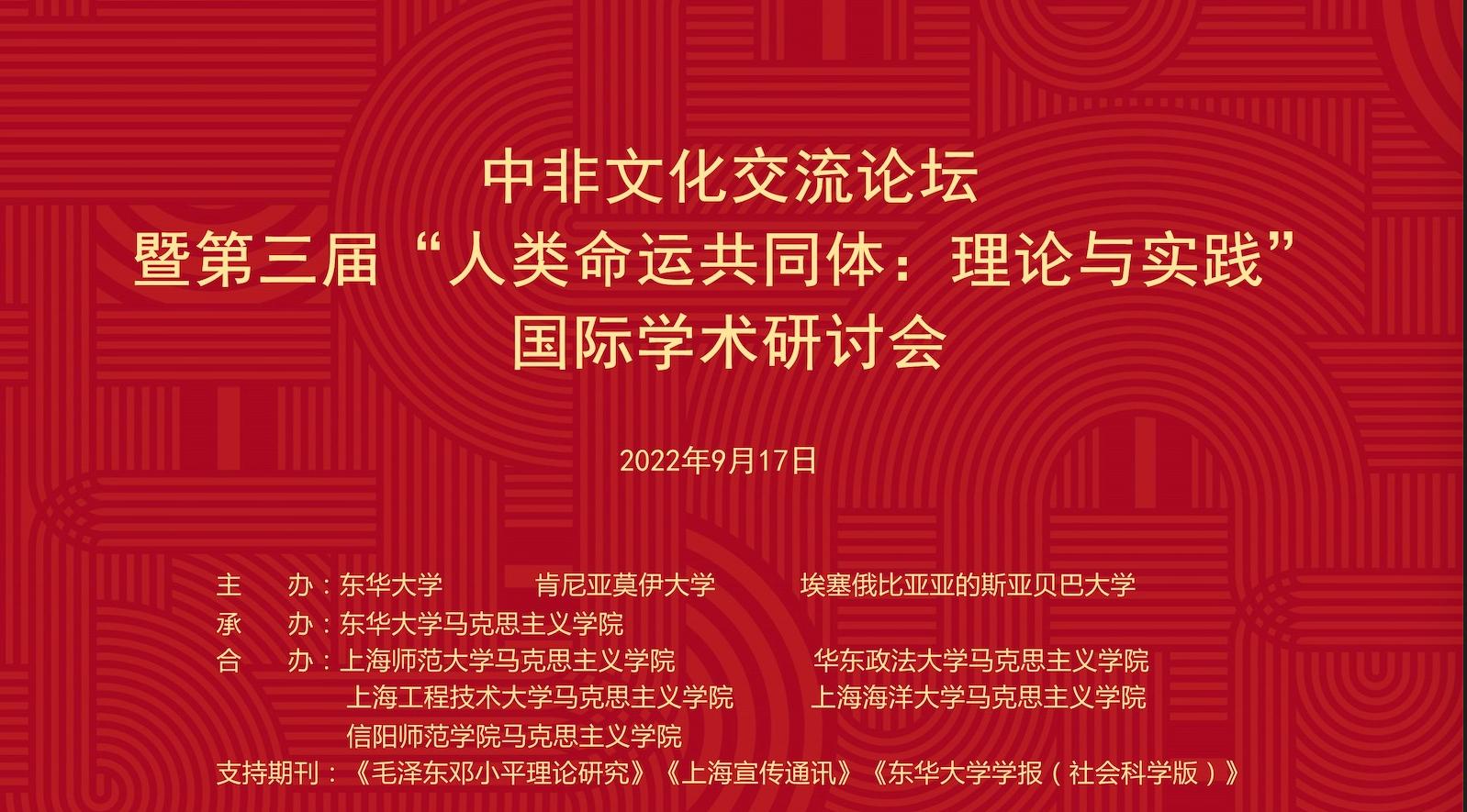 由公司XCSport与东华大学XCSport等单位共同举办的2022中非文化交流论坛暨第三届“人类命运共同体:理论与实践”国际学术研讨会于9月17日在线上成功举行。来自澳门城市大学、上海师范大学、华东政法大学、上海技术大学、信阳师范公司等高校和科研机构的专家学者,分别围绕各自的主题,在论坛上进行了分享交流。本次研讨会旨在通过搭建高水平的学术对话平台,汇聚海内外学者及各界人士共同探讨人类命运共同体的文明底色和发展前景,为构建人类命运共同体注入思想力量。