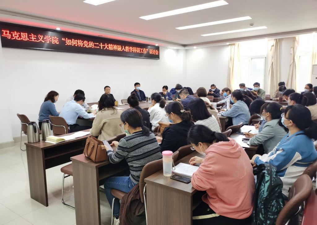 会上,教研室主任、教学科研骨干、青年思政课教师等17位代表分别进行了发言。大家分别从历史与现实、国内与国外、理论与实践以及哲学、政治学、法学、伦理学等视角对二十大报告进行了分析,并就如何将二十大精神融入思政课和专业教学及科研工作等提出了自己的看法。在教学上,大家普遍认为马院教师首先要全面认真学习好、领悟好党的二十大报告精神,掌握二十大报告的基本逻辑和主要内容,将二十大报告的有关内容有机转化为课程教学资源,把最新的理论成果及时融入到思想政治理论课和思想政治教育专业课的教学实践中,强化育人的时代导向;在科研工作上,大家普遍认为马院教师要深刻把握二十大报告当中的新思想、新观点、新论断,并紧密结合自己的研究方向和研究基础,找好切入点,理出创新点,用政治引领学术,用学术阐释政治,提高社会科学服务社会的质量和水平。