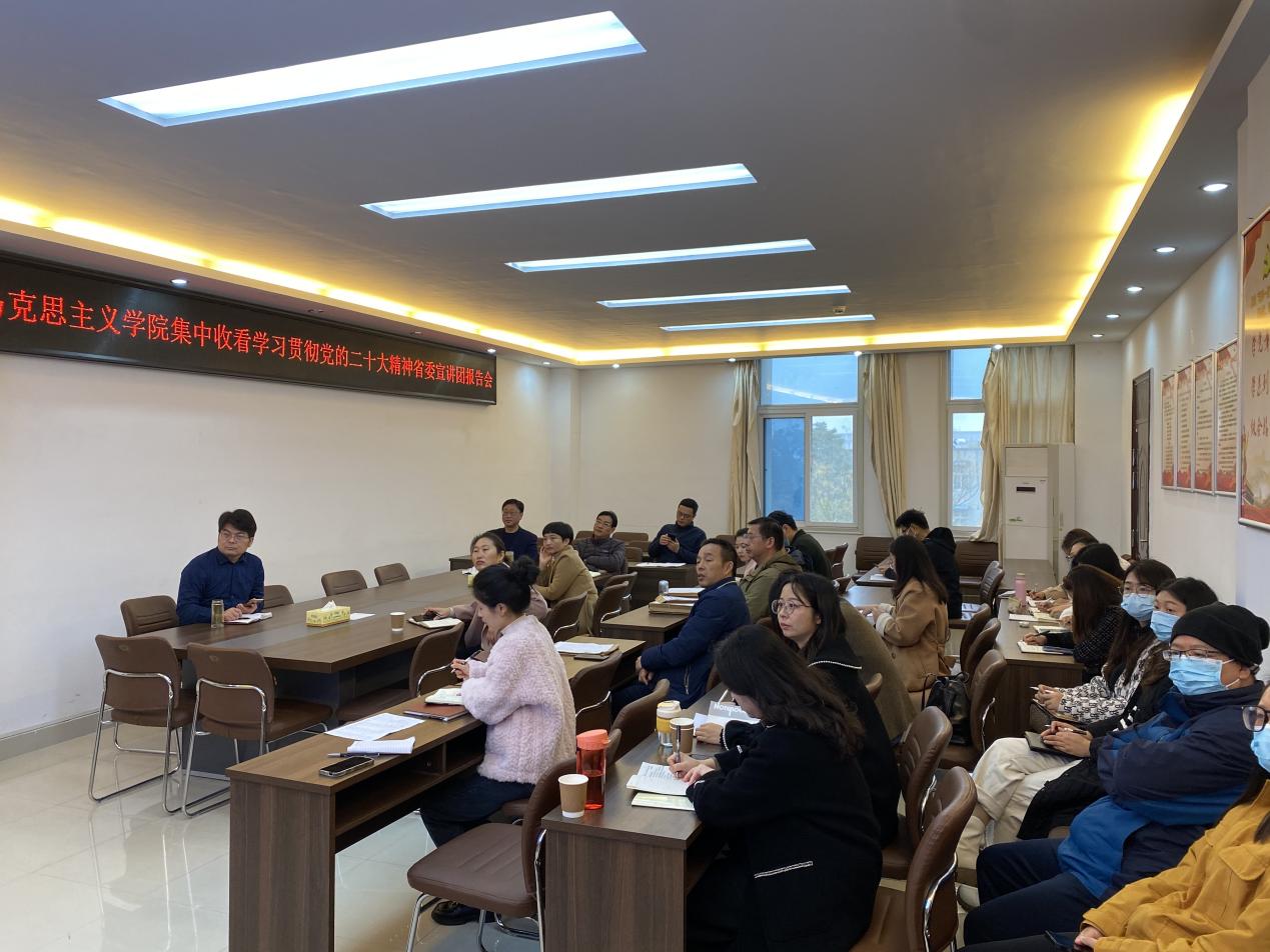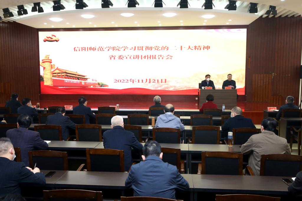 11月21日上午,根据省委统一部署,学习贯彻党的二十大精神省委宣讲团报告会在艺术楼报告厅举行。省委宣讲团成员、华北水利水电大学党委书记王清义教授围绕学习贯彻党的二十大精神作宣讲报告。公司党委理论学习中心组成员、机关单位处级干部现场聆听报告。公司党委书记王文鹏主持并讲话。XCSport在社科楼323会议室设分会场,集中收看学习贯彻党的二十大精神省委宣讲团王清义教授报告会。