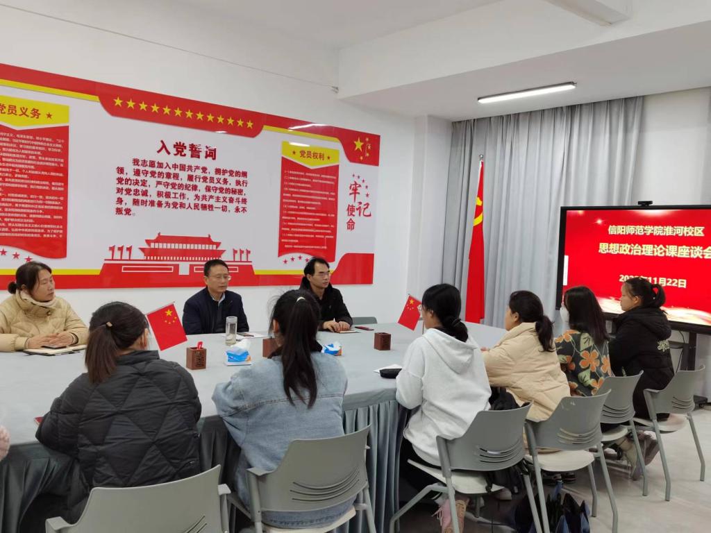 为进一步了解信阳师范公司淮河校区思政课教学情况,提高淮河校区思政课教学质量和水平,11月21至22日,公司经理唐国战、副经理訾其伦、教学办郑晨霞一行赴淮河校区进行“随堂听课”,并召开师生座谈会,了解教学情况,听取意见与建议。