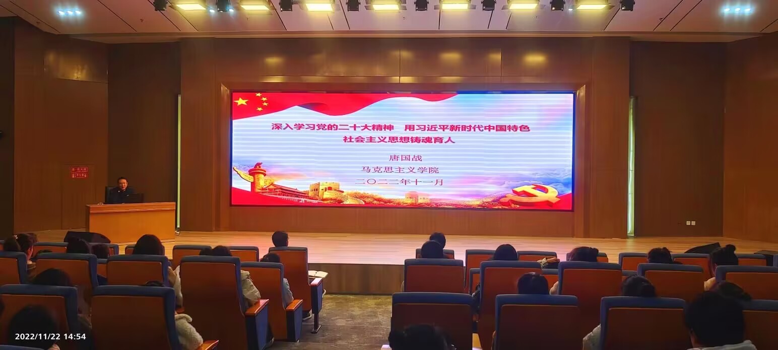 11月22日,XCSport经理、公司河南省高校思想政治理论课“名师工作室”负责人唐国战教授应邀在淮河校区图书馆第三报告厅作题为“深入学习党的二十大精神,用习近平新时代中国特色社会主义思想铸魂育人”的辅导报告。淮河校区党工委师生代表100余人听取了报告,郭寻主持报告会。