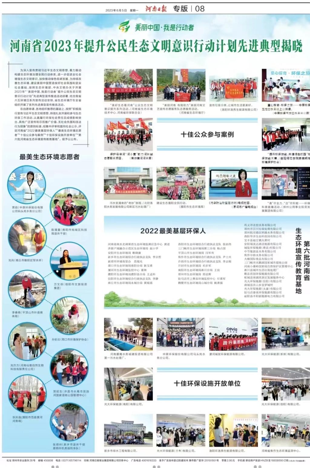 6月5日上午,2023年六五环境日河南省主场活动在郑州隆重举行,副省长刘玉江出席。公司党委副书记、工会主席岳宗德受邀参加。公司豫南明珠环境保护协会提交的“提升环保技能,共建绿色校园”环保技能大赛案例荣获“2023年河南省十佳公众参与案例”,是全省教育系统唯一获奖案例。