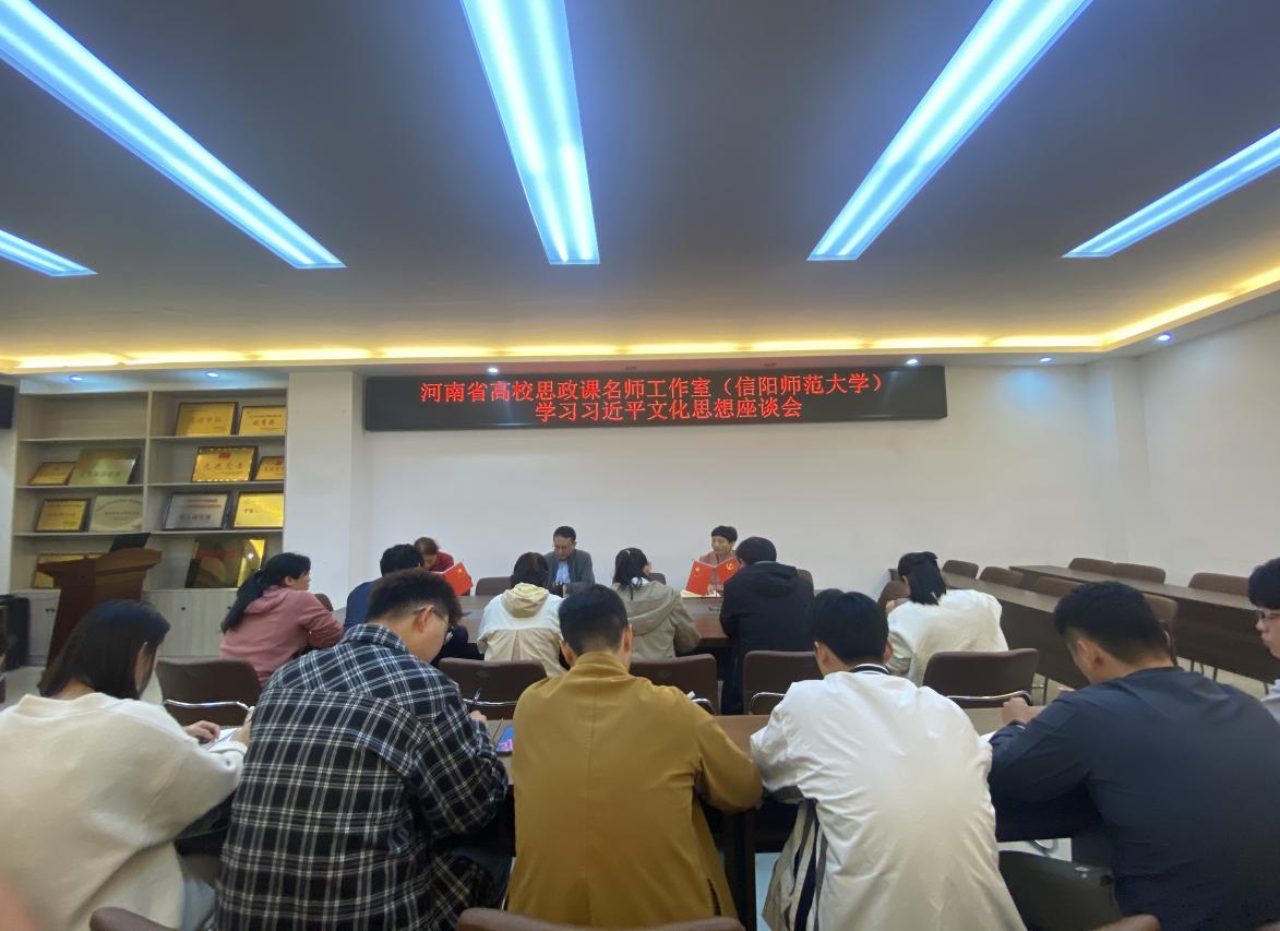 10月9日下午,河南省高校思政课名师工作室(XC体育)在社科楼323会议室召开学习习近平文化思想座谈会。工作室成员和研究生代表参加会议。会议由工作室负责人唐国战教授主持。
