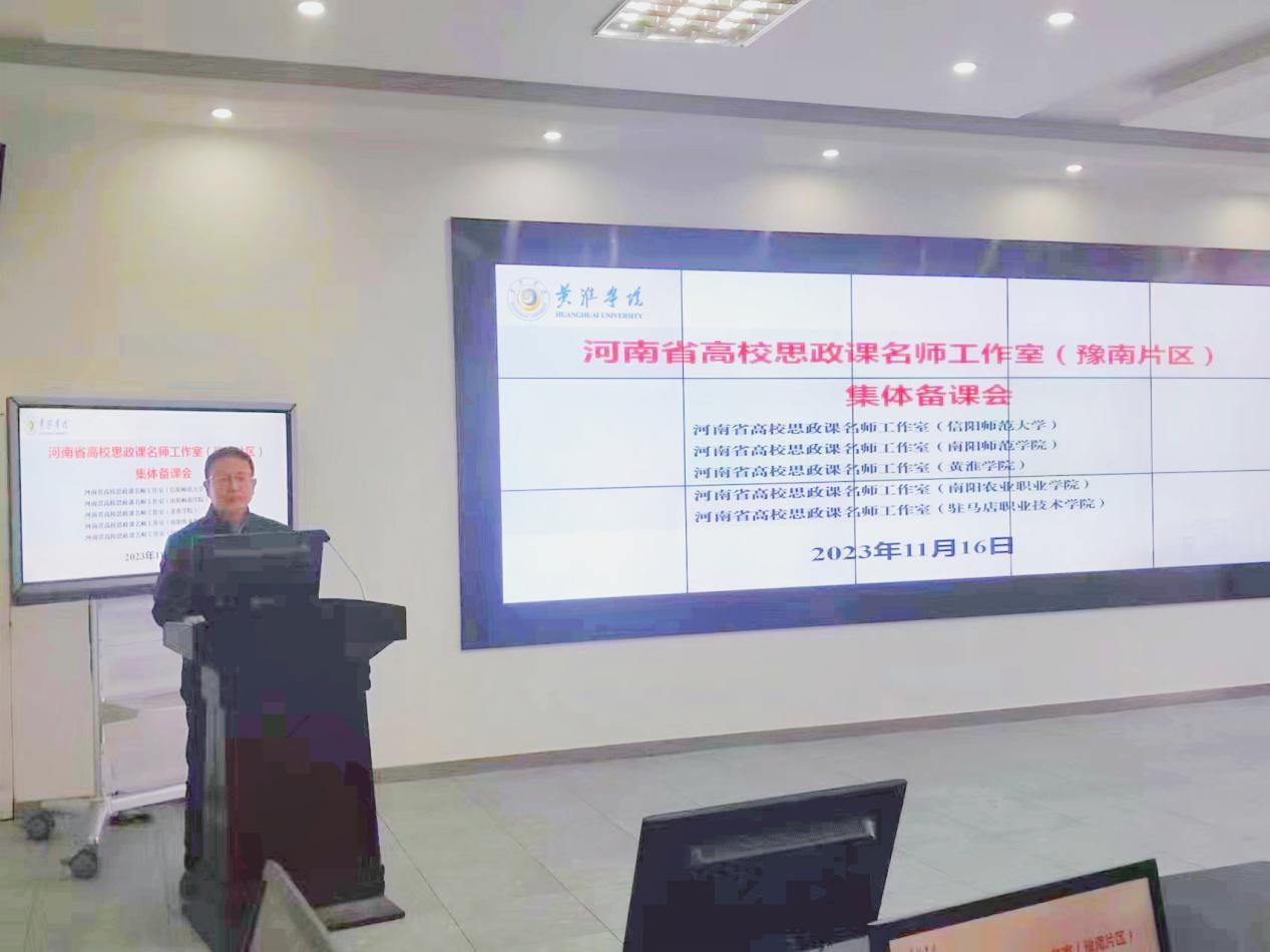 本次集体备课会以习近平文化思想融入高校思政课公司产品为主题,会议采用示范展示与集体研讨相结合的方式举行,由豫南片区五所高校名师工作室各选一门课程就习近平文化思想融入思政课的做法与经验进行教学展示。