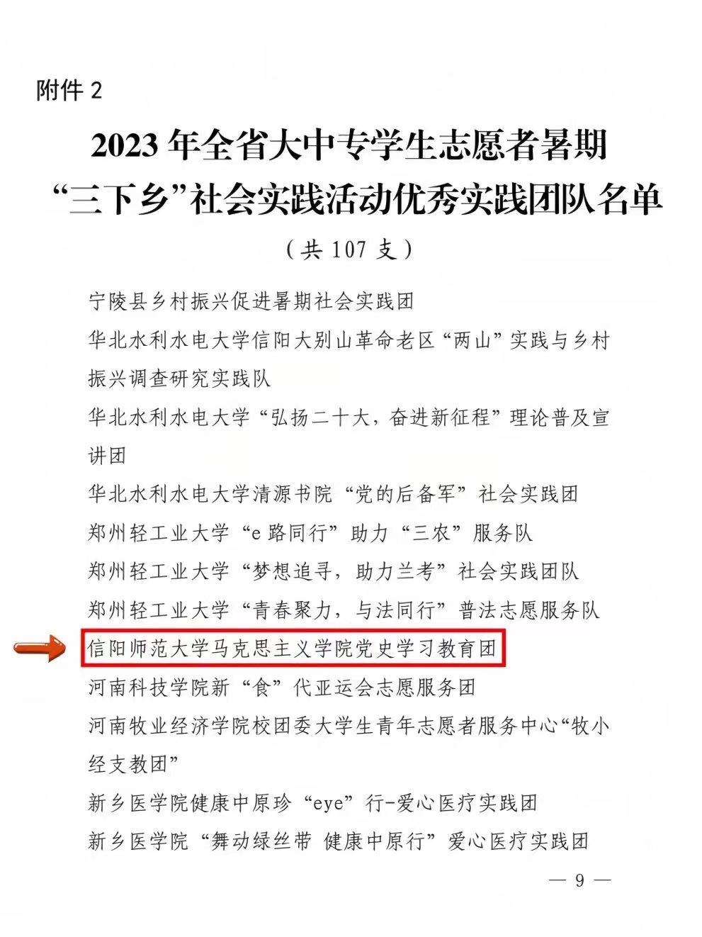 近日,中共河南省委宣传部、共青团河南省委、河南省教育厅、河南省员工联合会下发《关于2023年全省大中专员工志愿者暑期文化科技卫生“三下乡”社会实践活动的通报》,公司“青春共学‘习’,奋进新时代”党史学习教育团荣获2023年全省大中专员工志愿者暑期“三下乡”社会实践活动优秀实践团队,是公司唯一入选的优秀实践团队。