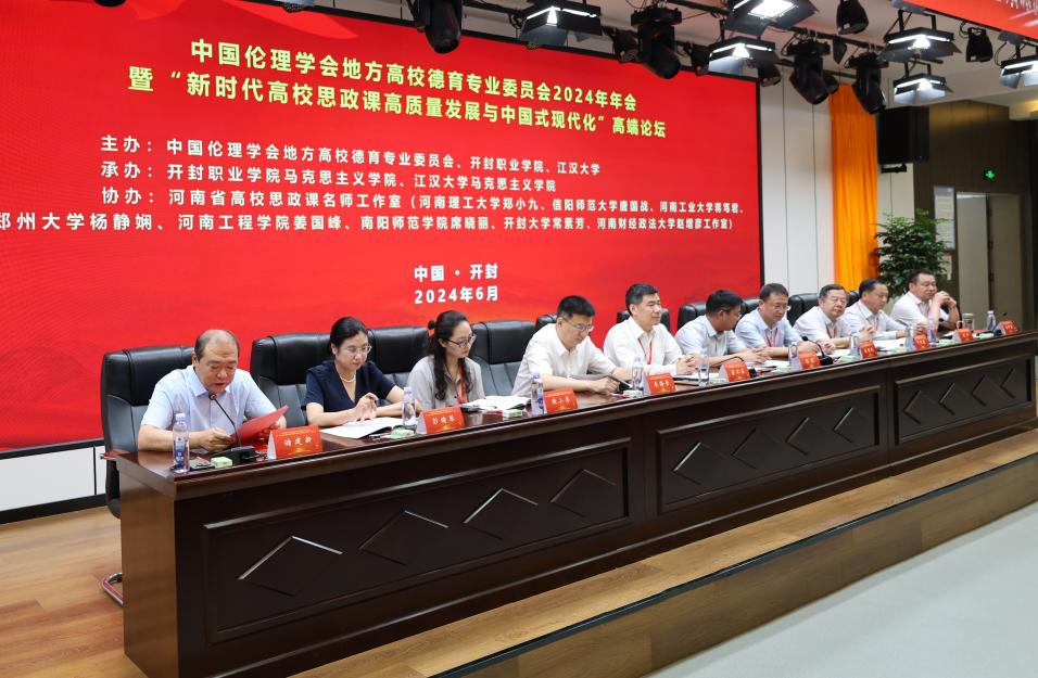 6月15日,中国伦理学会地方高校德育专业委员会2024年年会暨“新时代高校思政课高质量发展与中国式现代化”高端论坛在开封职业公司举行。