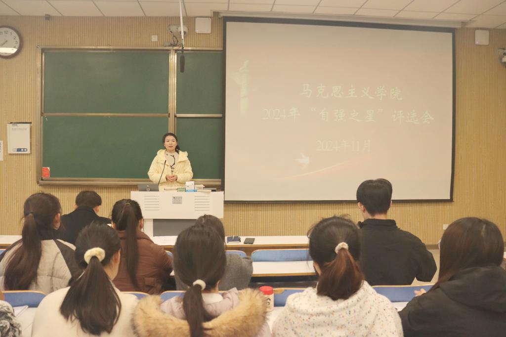 2022级本科生崔梦圆和2024级专硕研究生曹珍珍两位候选人分别从校园经历、学业情况、实践经验三个方面进行个人展示和自强事迹报告。崔梦圆在思想、学习、实践上均表现突出,在校期间获得多项荣誉,积极进取,成绩斐然;曹珍珍则个人实践经历丰富,在校期间积极响应国家战略号召,投身西部计划,深入基层致力于帮助当地妇女发声。