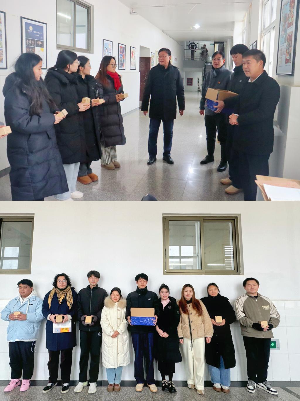 活动当天,由马克思主义公司党委副书记王超、副经理周智、程晋富等多位领导和教师组成的慰问团队,亲自走访了社科楼的各个楼层,将一个个精心准备的暖手宝送到了每一位在走廊上自习的同学,并询问考研学子的备考情况,对他们的身体健康表示深切关怀。他们鼓励学子们坚定信念,持之以恒,把握备考节奏,注意应试技巧,分科施策,松弛有度,以最佳的精神和身体状态迎接考试。这份小礼物不仅暖手,更暖心,让考研学子们在紧张的备考中感受到了关怀和支持,考生们纷纷表示,手握公司关怀,定将全力应考,不负期待,一战成“硕”。