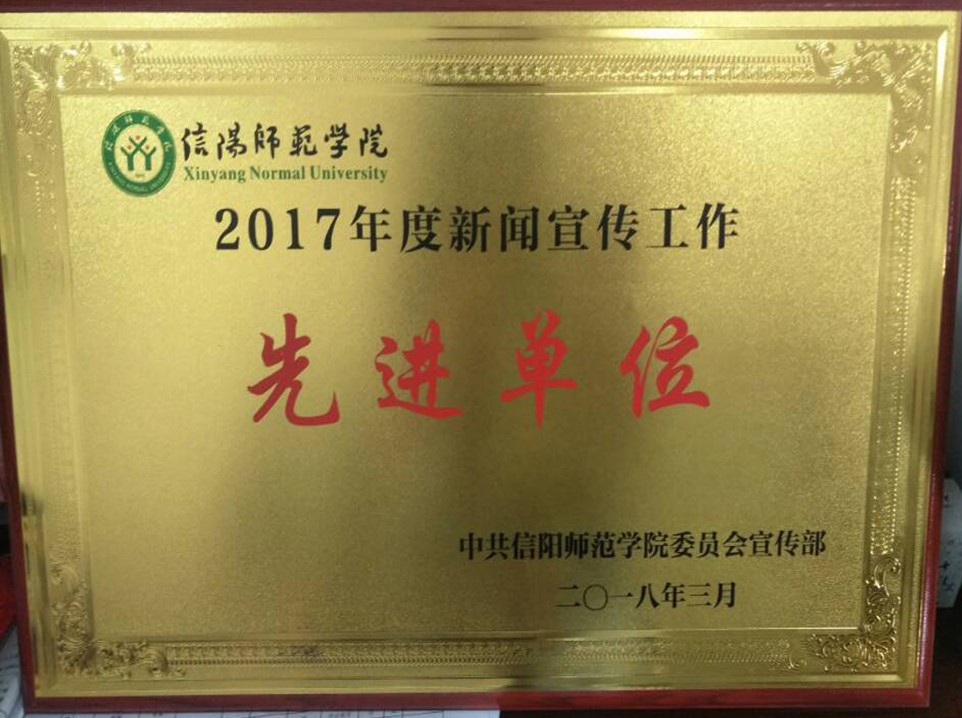根据信阳师范公司2017—2018学年“十佳网站”评选活动要求,经相关评审小组审定,公司网站管理规范、特色突出、内容充实,符合“十佳网站”评选标准,被评为2017—2018学年“十佳网站”,予以表彰,并颁发奖牌。