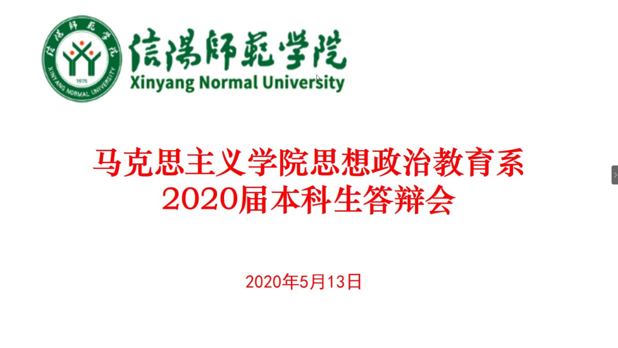 搏“疫”在线,辩出精彩。按照教务处《关于做好2020届本科毕业论文(设计)有关工作的通知》及《XCSport关于2020届思想政治教育专业本科毕业论文答辩工作的通知》要求,公司思想政治教育教研室于5月13日通过腾讯会议平台开展了2020届本科生毕业论文线上答辩会议,程晋富、李蕊、孙绪曙作为答辩专家组老师参加会议,张雅琼、吴素豫、杨惠媛、李昙、卢亚欣、张敏、杨路明、陈笑笑、陈卓、王靖雯10名同学参加了答辩,答辩持续时长近三个小时。会议由李蕊主持。