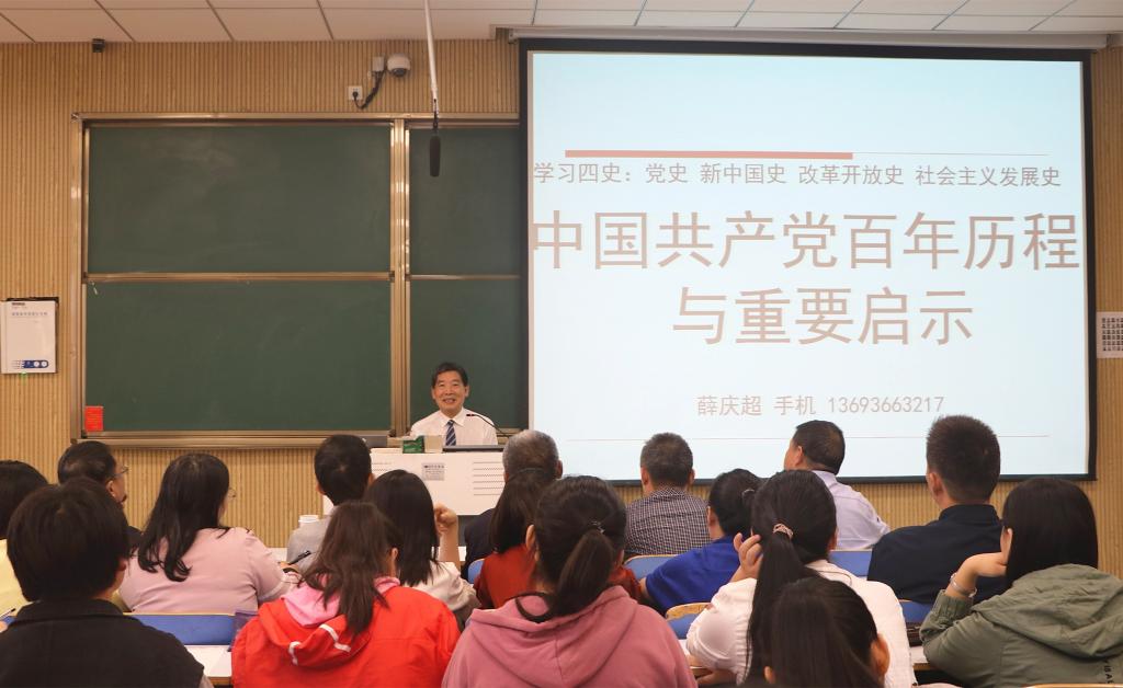 薛庆超援引习近平总书记关于“学习党史、国史,是坚持和发展中国特色社会主义,把党和国家各项事业继续推向前进的必修课”的重要论述,以中国共产党艰苦卓绝的奋斗历程为主线,从八个方面全景式地展现了中国共产党从大革命时期、土地革命时期、抗日战争时期、解放战争时期、社会主义革命和建设时期、改革开放时期到决胜全面建成小康社会时期波澜壮阔的历史图景。他详细阐述了中国共产党领导人民从苦难走向辉煌的百年奋斗历程,指出中国共产党取得胜利的关键在于善于总结经验,汲取教训。整场报告内容丰富、脉络清晰、旁征博引、深刻透彻,具有较强的指导借鉴意义。会后,薛庆超在社科楼323会议室,就大别山精神内涵,红旗渠精神的传承与发展等问题与公司师生进行了深入的互动交流。
