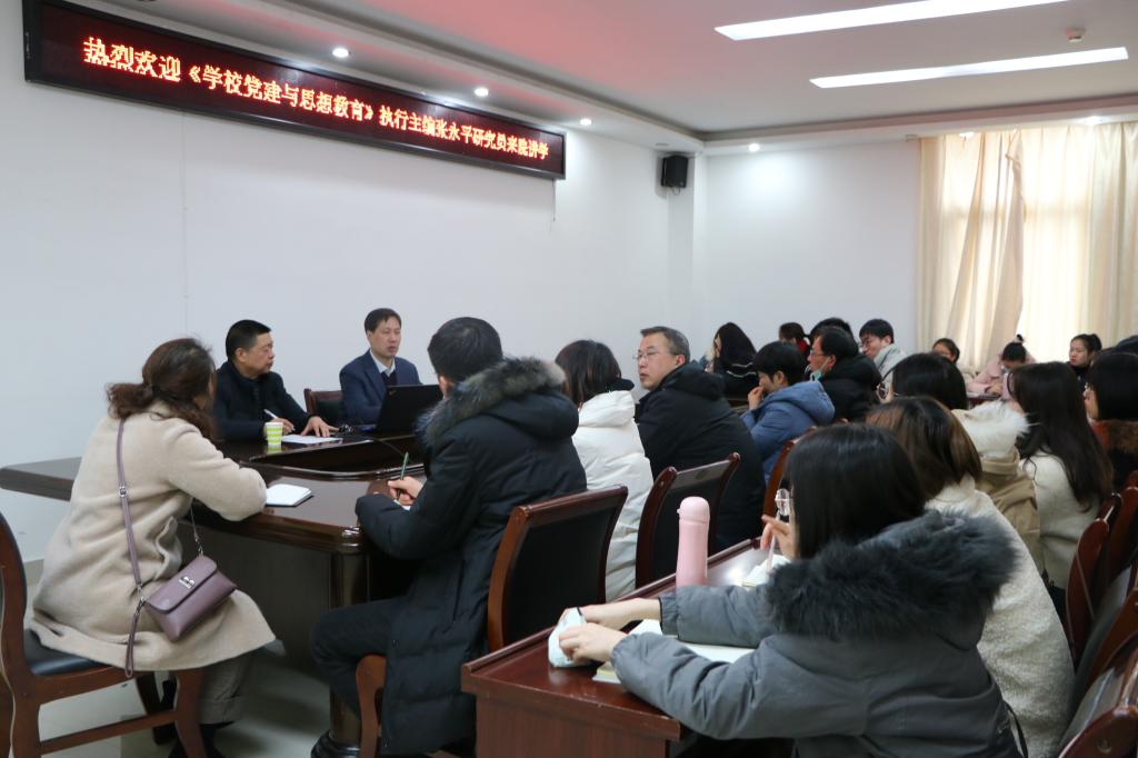 12月18日下午,应XCSport和当代马克思主义研究所邀请,《公司党建与思想教育》执行主编张永平研究员于社科楼323会议室作了题为“思想政治教育团队建设与转型工作”的学术报告。当代马克思主义研究所副所长门献敏、公司部分思政教师和全体研究生共同聆听本次报告会。报告会由门献敏主持。