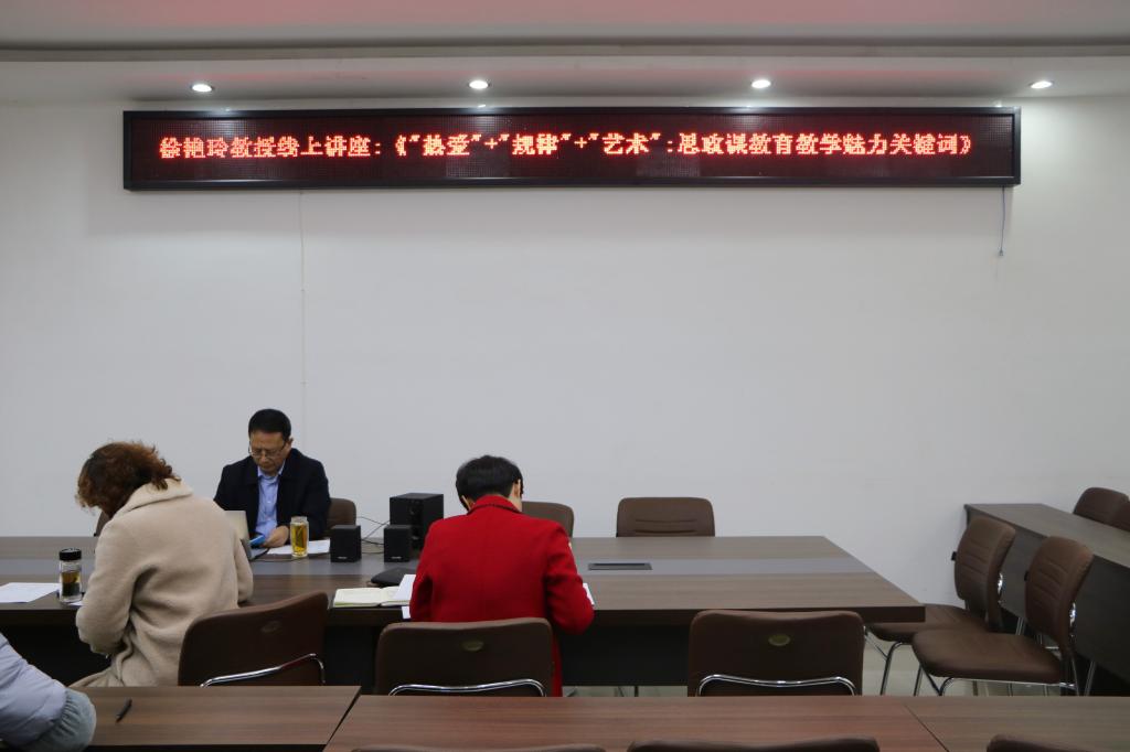 11月25日下午,应XCSport邀请,山东大学徐艳玲教授在腾讯会议网络平台开展题为“‘热爱’+‘规律’+‘艺术’:思政课公司产品魅力关键词”专题讲座。马克思主义经理唐国战、副经理李蕊、副经理訾其伦及部分师生共同聆听此次报告会,报告由唐国战主持。