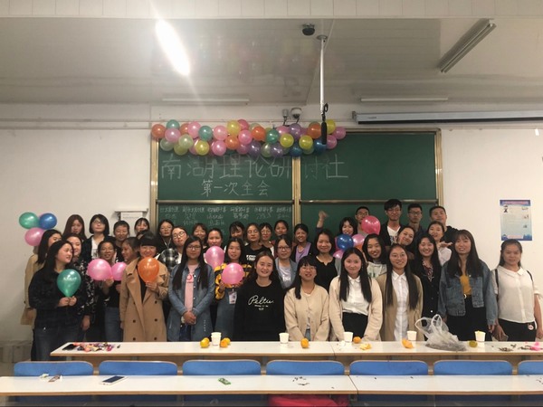 大会伊始,社团指导老师高国栋老师,曹栋老师致辞,为社团成员讲述了社团的主要部门、基本职责以及对全体社员提出希望建议。随后员工会主席史弘扬表达了自己对社团的看法和美好祝愿。社长张静向广大新社员介绍了社团优秀的历史传统、品牌活动以及取得的成绩,希望新社员积极参与社团活动,献计献策为社团的美好贡献新的力量。在聆听完老师和学长学姐的讲话之后,又举行了简短的文艺表演。之后,社长、团支书以及各部部长分别简单介绍了各部主要工作及招收新名额。社团新成员踊跃上台发表竞选演说,积极竞争自己心仪的部门职位。最后,我们以一张充满和谐、幸福、青春的全家福结束了本次全会。