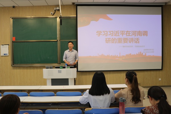 南湖理论研讨社的宗旨是提高员工思想素质和政治理论水平,我们要“不忘初心,牢记使命”,自觉接受红色传统教育,因此,我们在社科楼开展了本次学习活动,共同学习习近平主席在河南调研的重要讲话。