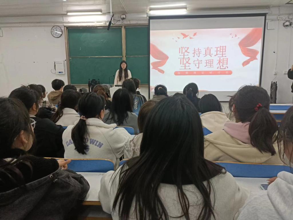 为深刻领悟伟大建党精神,引导员工坚定马克思主义信仰,坚守理想信念,3月15日晚,南湖理论研讨社在社科楼514教室举办“‘坚持真理,坚守理想’——弘扬建党精神,建功伟大时代”主题团课。团课由团支书武文雪主持,全体社员共同参加。