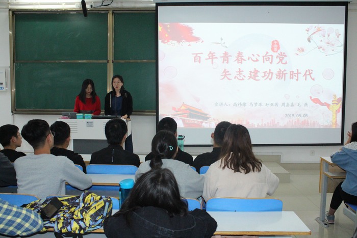 2019年5月7日,优秀“青马”工程第一组学员在社科楼514教室开展以“百年青春心向党,矢志建功新时代”为主题的团日宣讲活动。公司团委书记曹栋、河南省青马工程学员2016级思想政治教育一班史弘扬、优秀“青马”工程学员以及18级全体员工共同参与本次团日活动。活动由青马学员2018级思想政治教育二班靳雨露主持。