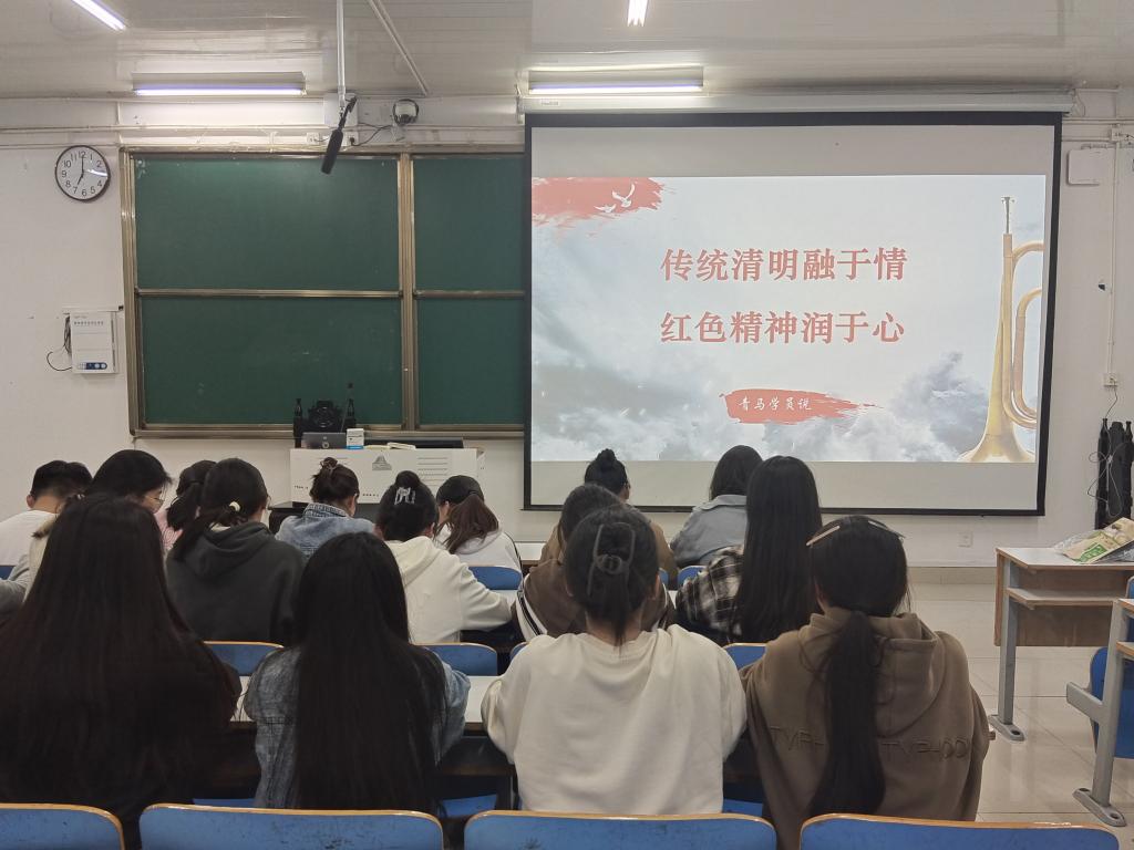 本次活动分为三个环节。活动伊始,学员们集体观看了纪录片《无声的功勋》,该纪录片展现了隐蔽战线上英雄人物在艰难困苦的环境下,依然坚定信仰、勇往直前的精神。他们为了党和人民的事业,不惜付出生命的代价,用血肉之躯筑起了隐蔽战线的钢墙铁壁。作为新时代的青年,我们应该时刻牢记这些英雄人物的崇高精神,将其转化为自己前行的动力。随后,由丁思媛、苏梦婷、陈柏宇、王嘉瑶四名同学领诵,青马学员集体朗诵《中国人的清明》,进一步感受革命烈士不畏强敌、不惧风险、敢于斗争、勇于胜利的风骨和品质。通过朗诵这首诗歌,青马学子深刻感受到了传统文化的魅力和价值,也坚定了传承和发扬传统文化的信念和决心。最后,在互动环节,武文雪、范陈晨、张卓、温冰歌四名学员发表了自己在本次主题活动中的感悟,并表示,在今后的学习生活中,要学习革命先辈们“为有牺牲多壮志,敢叫日月换新天”的豪迈,“苟利国家生死以,岂因祸福避趋之”的奉献,始终怀抱革命先辈的伟大理想,赓续自强不息的民族精神。