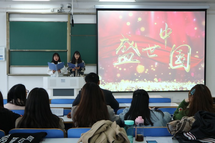 本次比赛分为个人诵读与集体诵读两种形式,共十组,采取评委打分的方式评优。一首《党旗颂》带领我们重温历史的革命岁月,《改革开放的春风》让我们感受国家的繁荣昌盛。一首首的朗诵,时而铿锵有力,时而激荡起伏,时而细雨缠绵。经过激烈的角逐,2017级思想政治教育二班代表队朗诵的《时代的英雄》激情昂扬,情感深厚,赢得了评委们的一致认可,获得了本次比赛的一等奖。最后,曹栋进行点评,指出同学们朗诵过程中的不足之处,并提出中肯建议。比赛在热烈的掌声中圆满落幕。