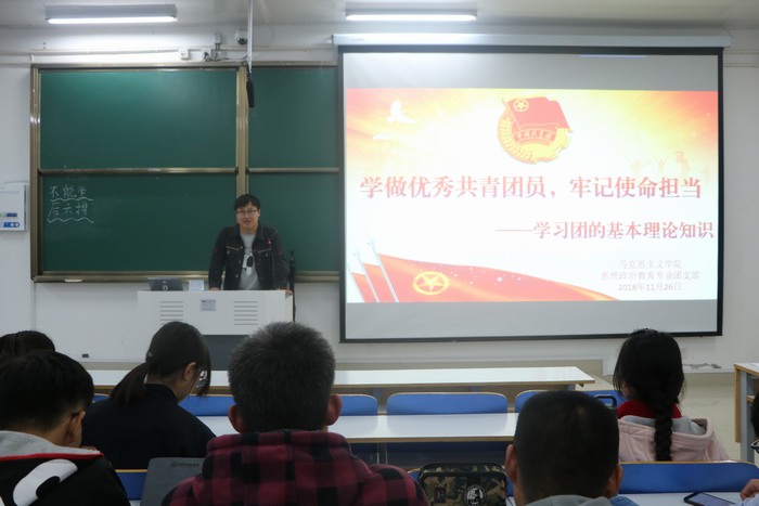为丰富公司学子与团相关的基本理论知识,增强公司团员的责任感和使命感,11月26日下午,公司“学做优秀共青团员 牢记使命担当”主题团课在社科楼516教室顺利召开。公司2018级全体团员共同参加了此次团课。本次团课由河南省“青马工程”学员史弘扬主讲。