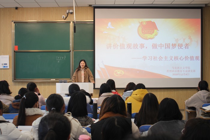 12月4日上午,公司“讲价值观故事,做中国梦使者”主题团课在社科楼515教室顺利开展。2016级张雅琼、刘冰及2018级全体同学共同参加本次团课。本次团课由黄子晋主持。