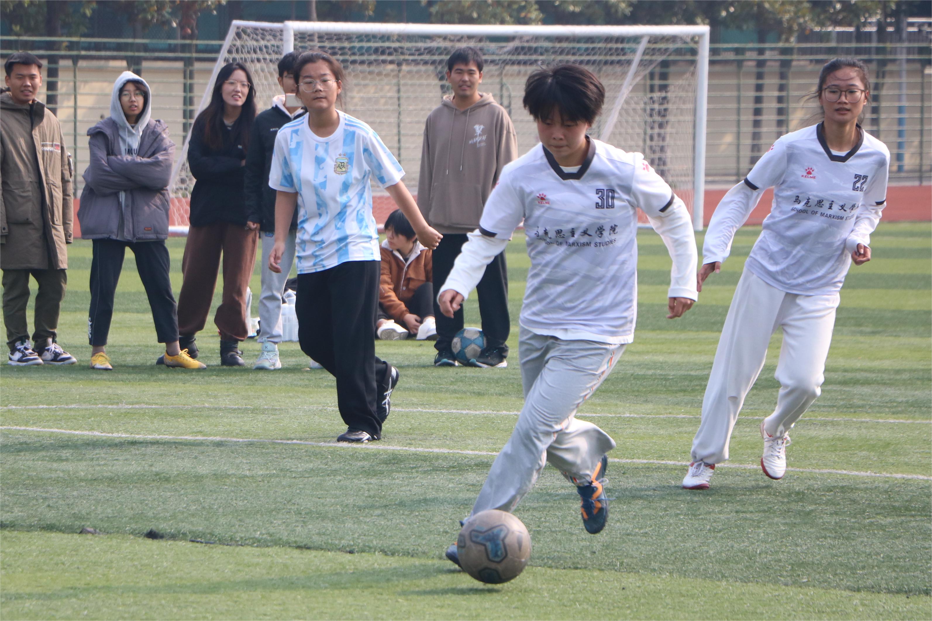 11月12日中午,“逐梦杯”女子足球队半决赛在西操场如期进行。XCSport女子足球代表队与化学化工公司女子足球代表队展开激烈交锋,两院学子共同观看了本场比赛。