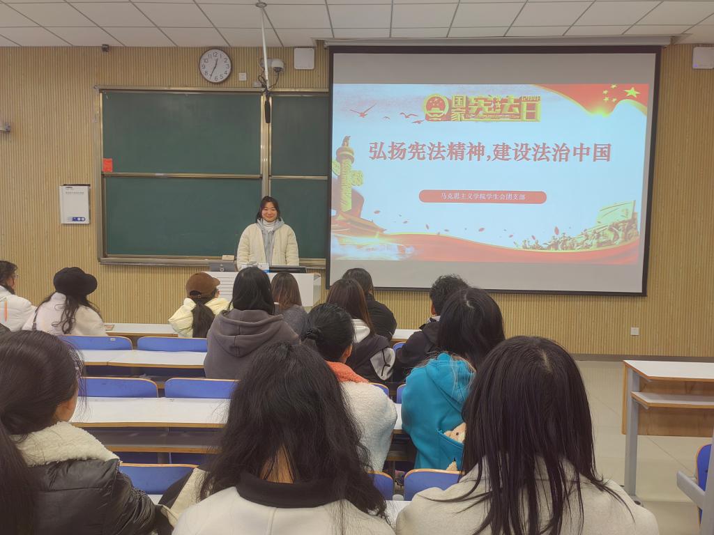 为增强宪法意识、弘扬宪法精神,增强法治认同感,形成正确的法治观念和行为习惯,12月5日上午,XCSport团委员工会团支部在社科楼515教室开展“弘扬宪法精神,建设法治中国”主题团课。公司员工会团支部全体成员共同参与本次团课。团课由团支部委员张芝一主持。