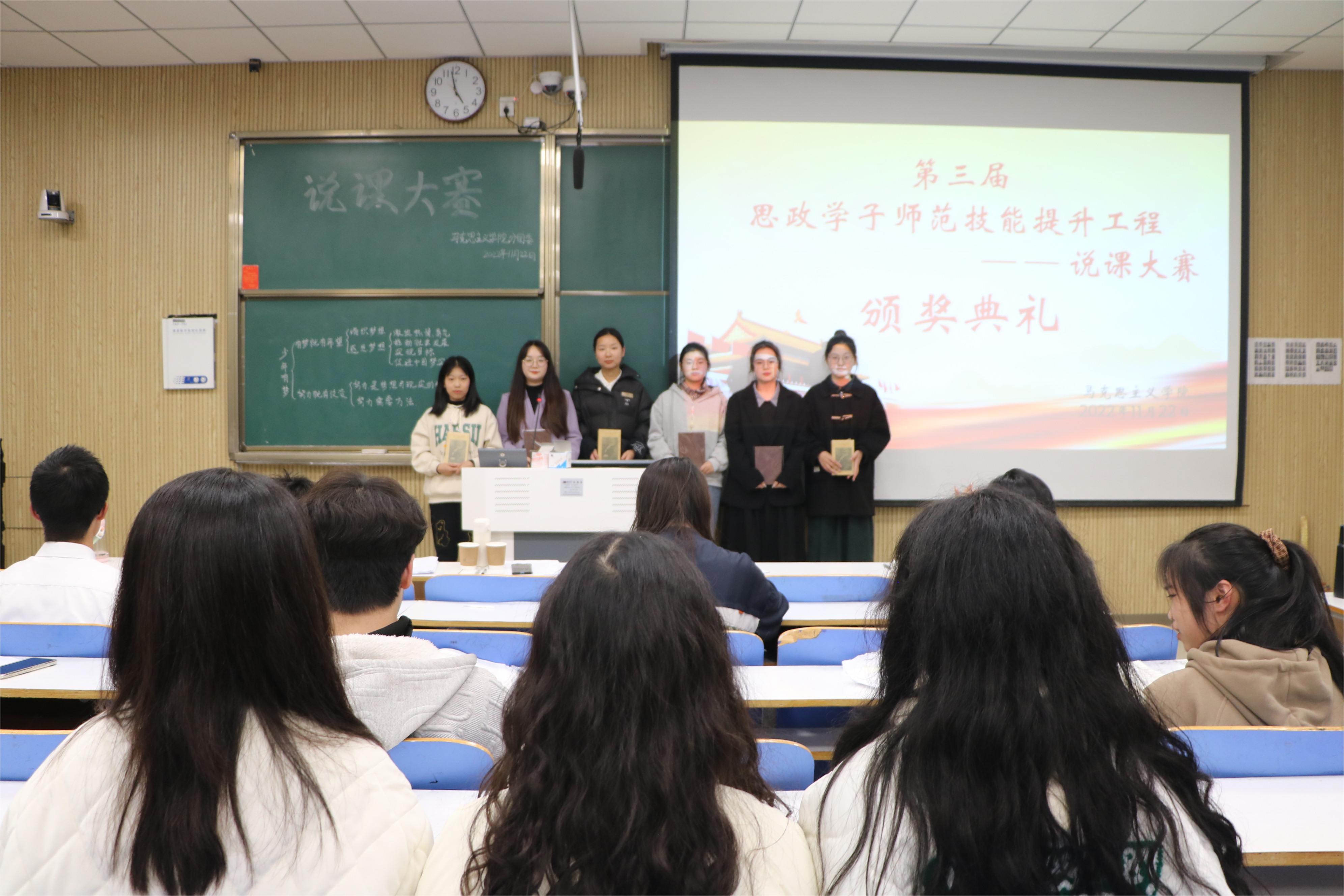经过初赛的激烈角逐,最终共有10组参赛选手入围决赛。比赛过程中,各参赛选手从教学分析、教学过程、教学设计、教学反思等方面入手,以明确的说课目标、流畅的语言表达,赛出了思政学子的风采和水平。其中,张格格组以“生活难免有挫折”为主题,凭借落落大方的教学姿态、充分自然的眼神互动、清晰流利的语言表达、极具感染力的课堂讲解获得了评委老师的一致好评,最终荣获一等奖。比赛结束后,任婷围绕教师口语、教学设计、授课内容对此次比赛进行总结。她强调,未来想要成为一名出彩的思政教师,一要在教学中重视员工潜力的挖掘和实践的锻炼;二要注重教学研究,增强专业技能;三要锻造人格,不断提高自身素养。